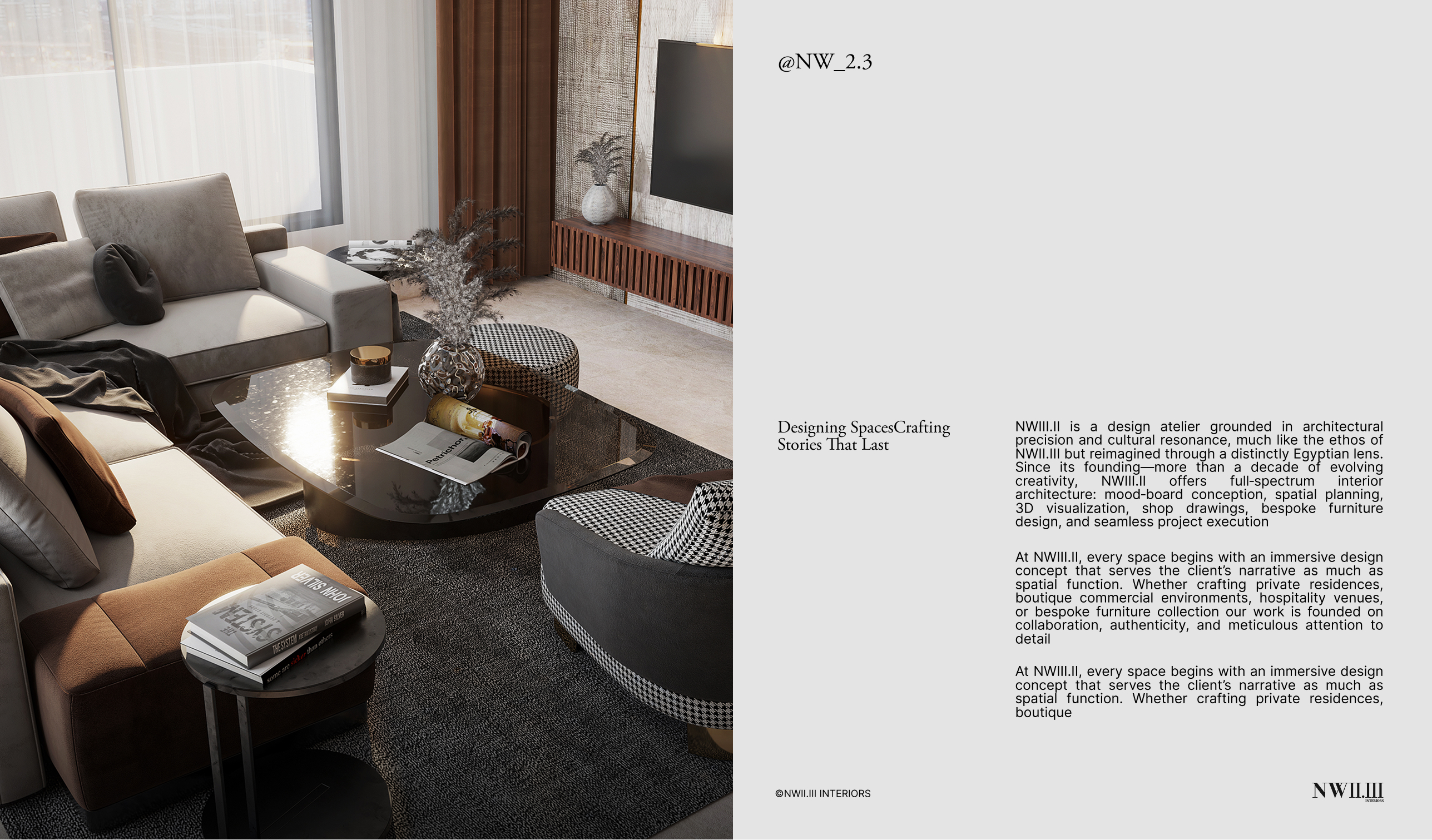 NWII.III is derived from the Golden Ratio, a universal symbol of harmony in art and architecture. By choosing 2.3 instead of 2.26, we express our commitment to exceeding norms—designing beyond standards and expectations.