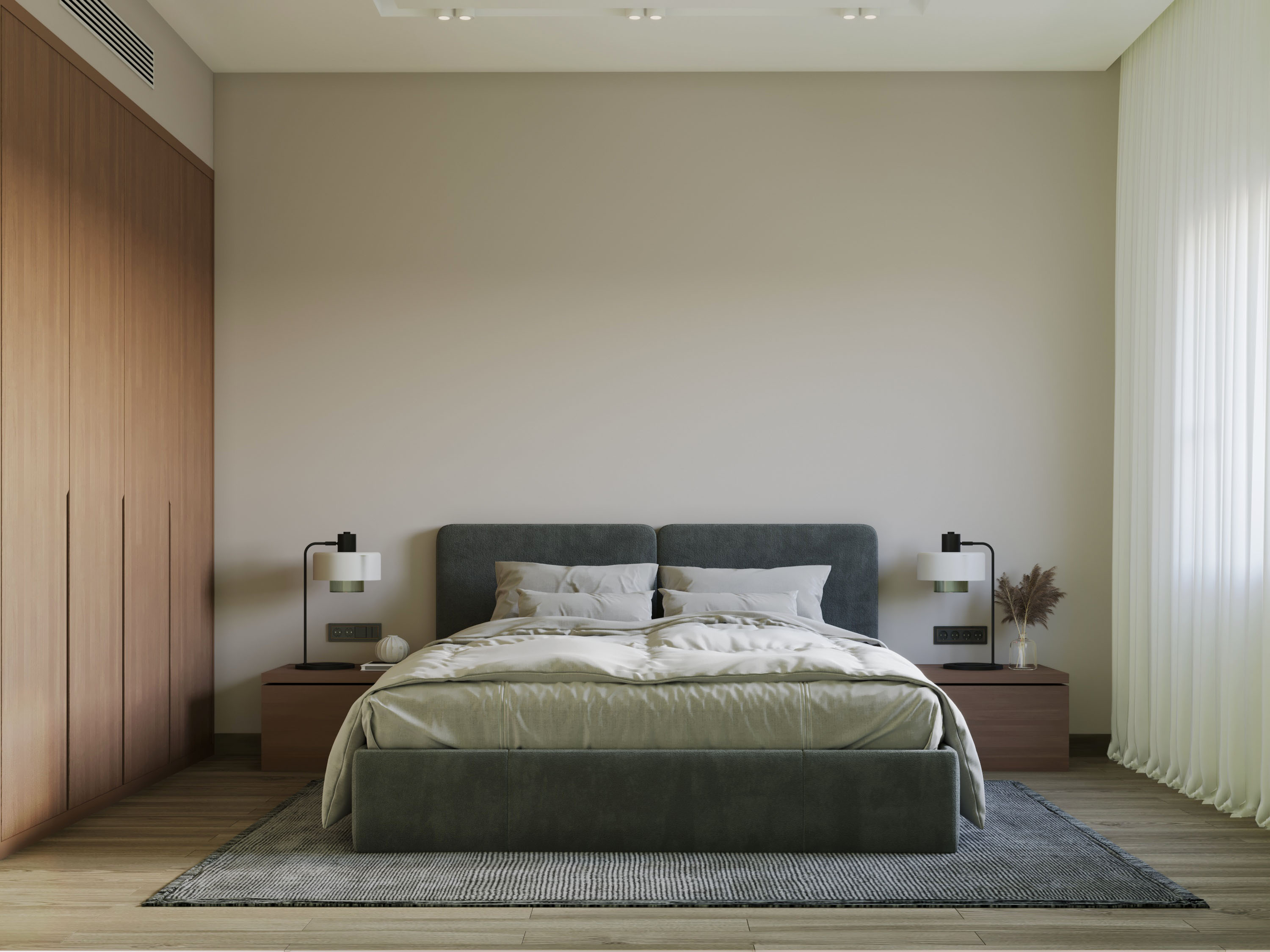 The design emphasizes balance through a palette of earthy neutrals and light wood accents, creating an environment that is both refined and calming.
