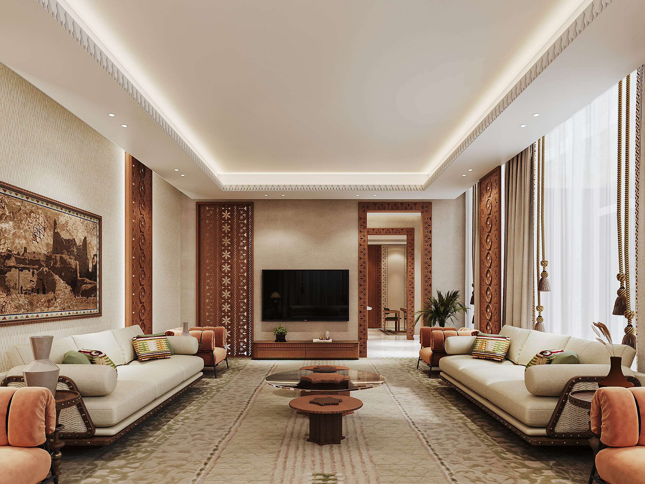 Identity doesn’t require demolition. It requires direction. Within an existing villa project, this interior redesign was driven by one clear objective: introduce a strong modern Najdi identity.