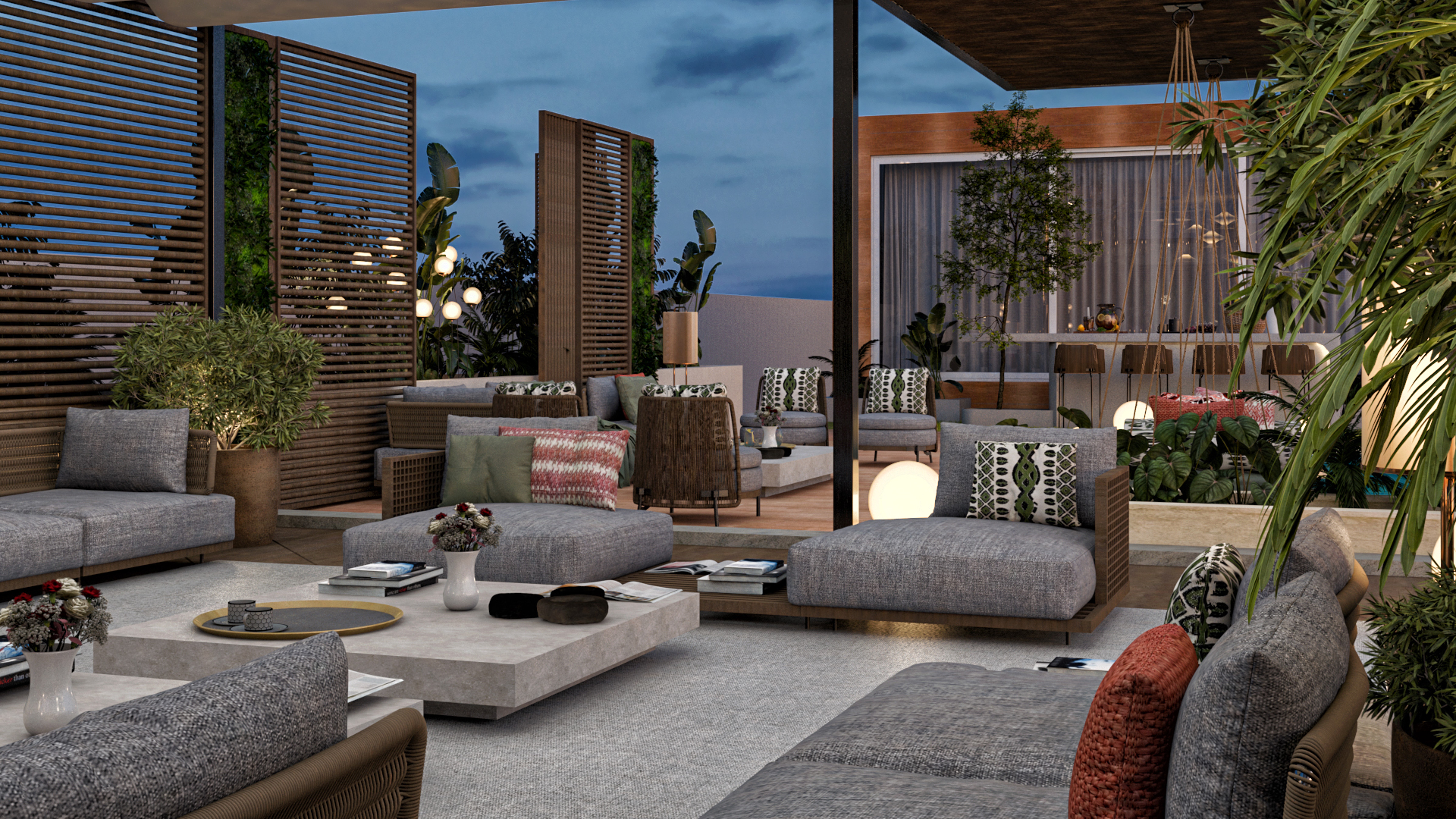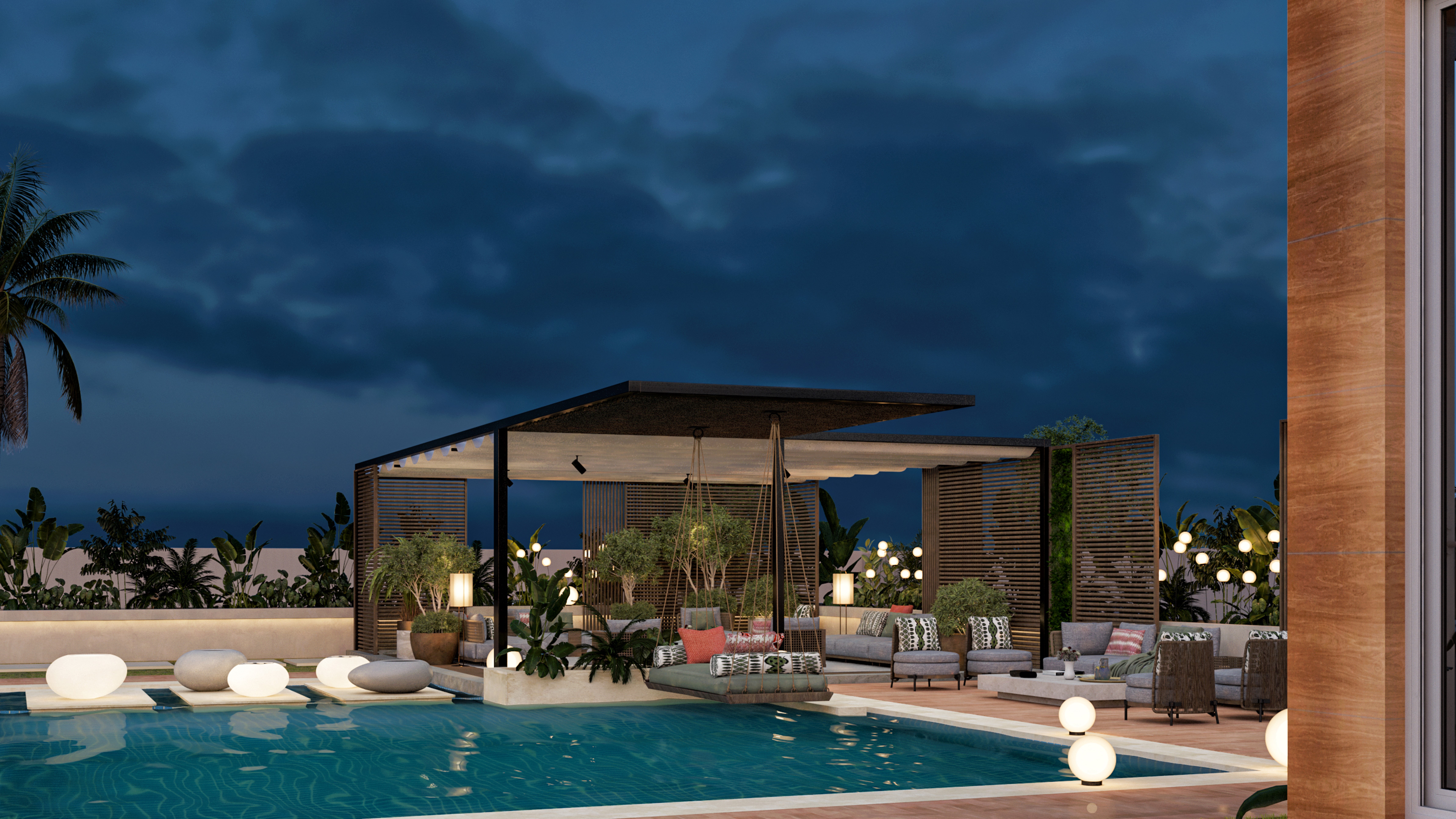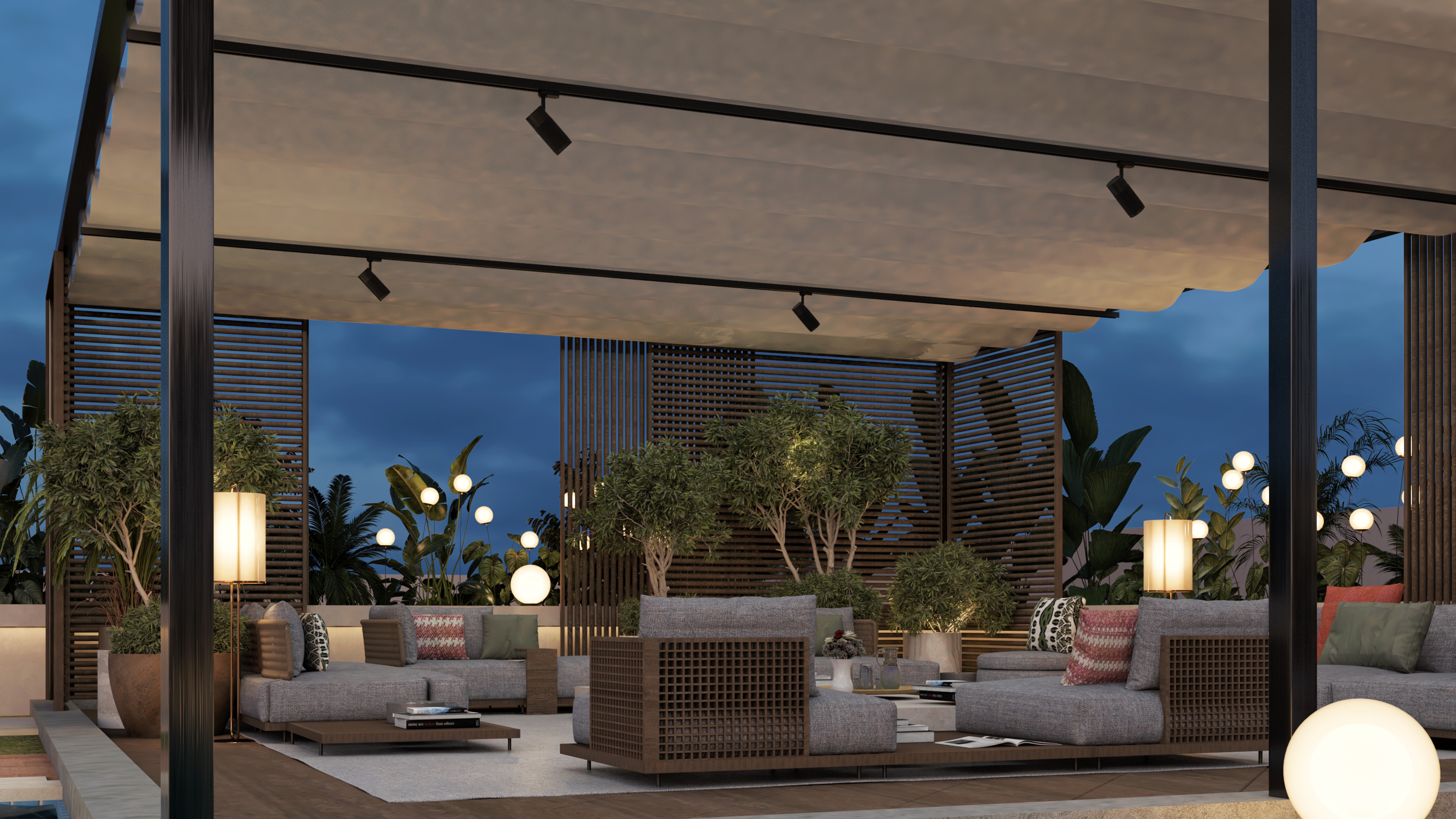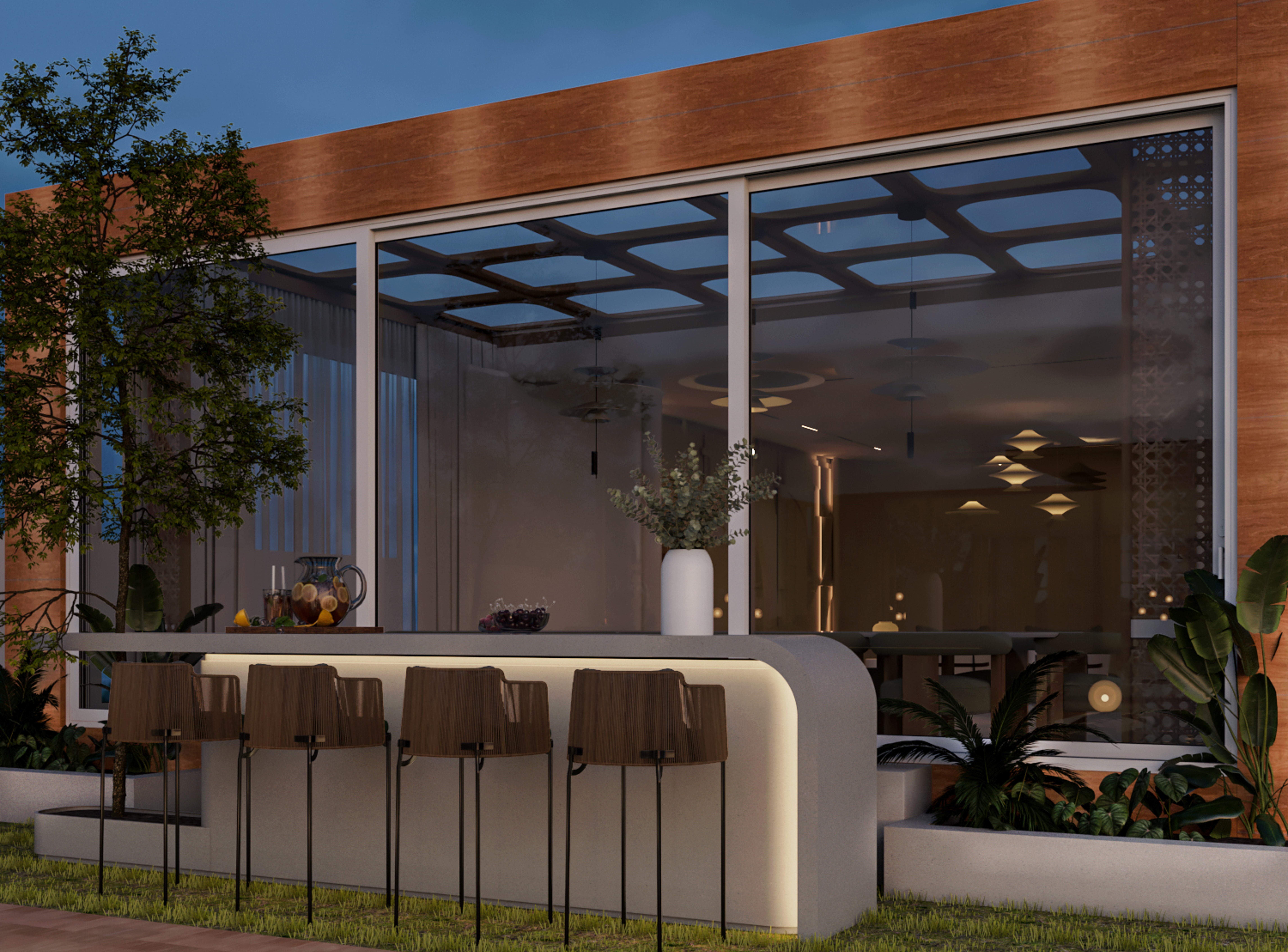 The rooftop bar is the heart of the project. Designed with Salmani sensibilities, it blends Saudi ornamentation with Mediterranean clarity, creating a centerpiece of texture, form, and identity.