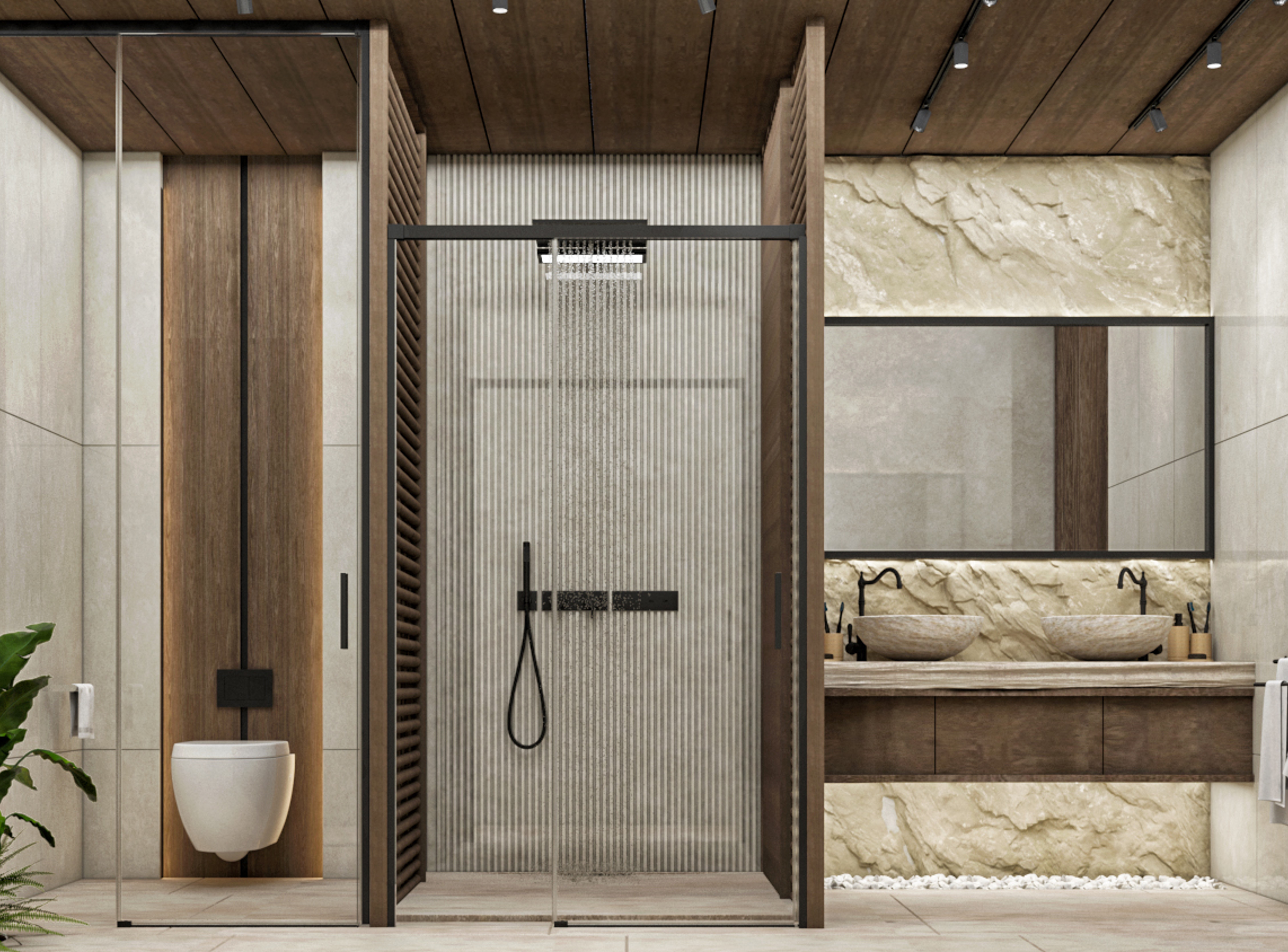 Designed as architectural twins, both structures share a unified material palette and aesthetic, from acoustic cladding to warm travertine flooring, while maintaining their own identities.